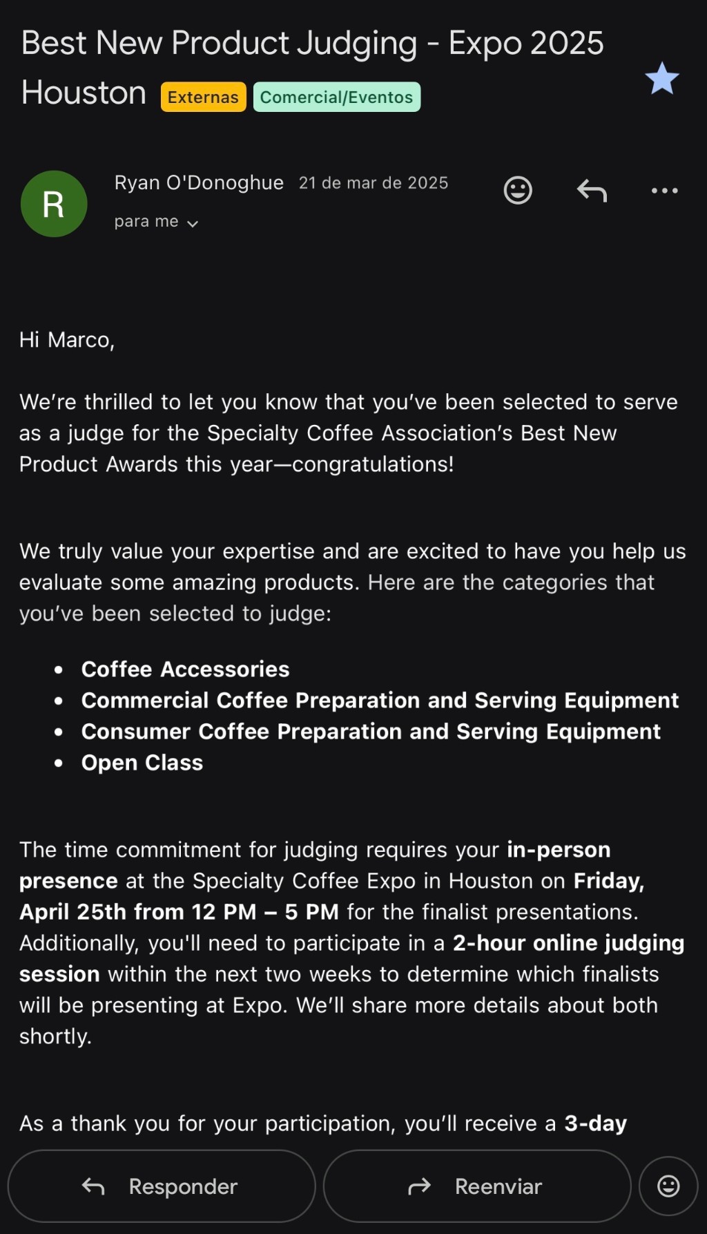 Se cumple un año de la experiencia como Juez en la Specialty Coffee Expo Houston 2025.
